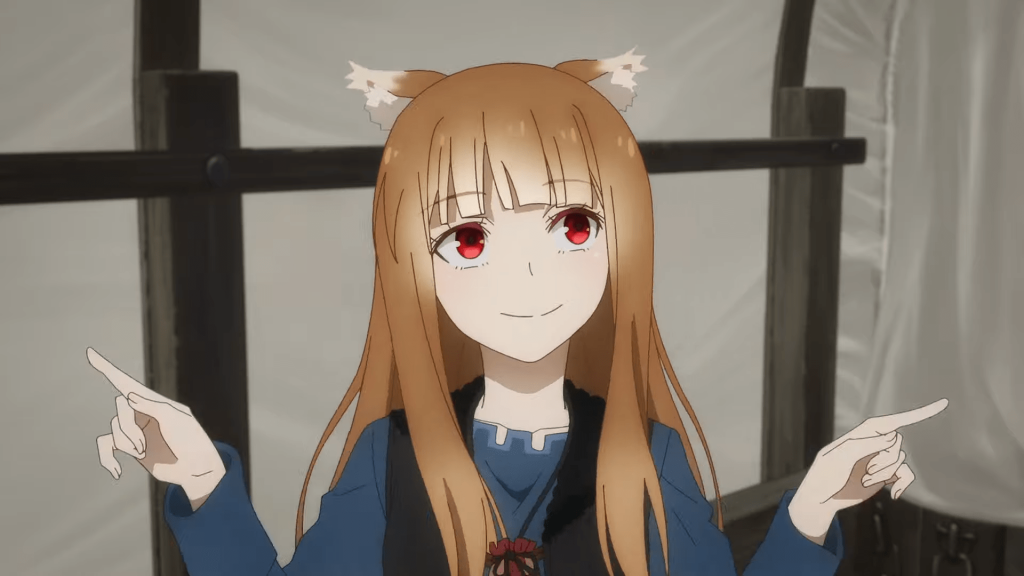 Protagonist: Holo, a wise wolf deity disguised as a girl. Witty and cunning, she navigates economics and human nature with merchant Kraft Lawrence, revealing vulnerability beneath her confidence.
