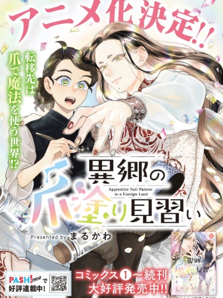Apprentice Nail Artist in a Foreign Land is a manga series originating from Japan, crafted and drawn by Marukawa. Launched on Shufu to Seikatsu Sha [ja]’s Pash Up! online manga platform in March 2022, the series continues to unfold with installments gathered into five tankōbon editions by January 2025.